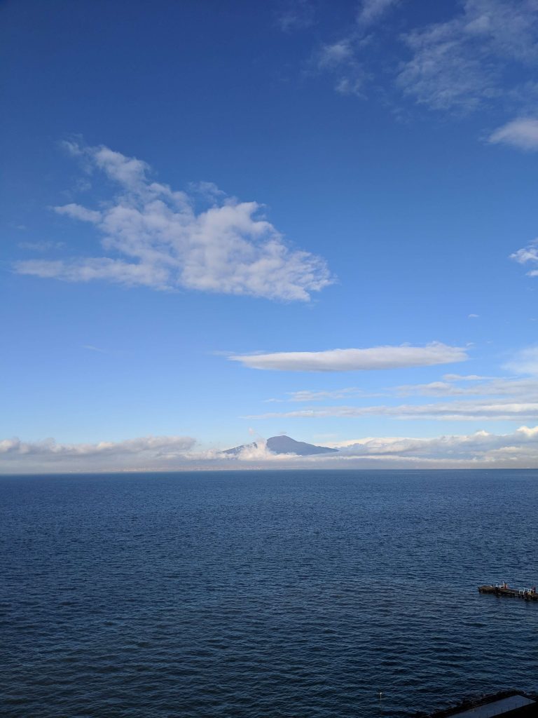 - Overlooking the beautiful gulf of Naples, volcano out in the sea