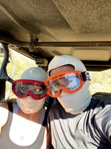 For our setup we just wore comfortable clothing, and they provided masks and goggles, both a necessary cause that desert dust (or mud) really gets in the air when you’re zipping through.
